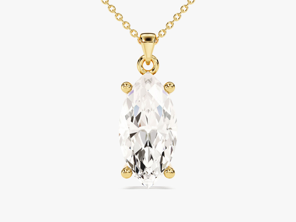 Designed to be the perfect match for any outfit, this pendant is elegant and glamorous. The marquise-cut lab grown diamond or moissanite gives a sleek and polished look that is irresistible.
