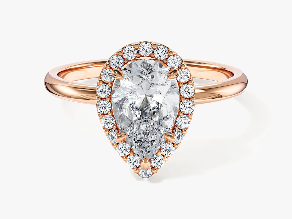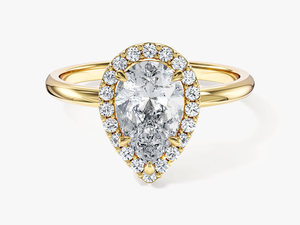 Experience the profound allure of our Pear Halo Lab Grown Diamond Engagement Ring, a harmonious union of classic charm with a contemporary twist. This extraordinary ring showcases a brilliant pear-cut lab-grown diamond, meticulously created to emphasize its remarkable clarity and mesmerizing charm.