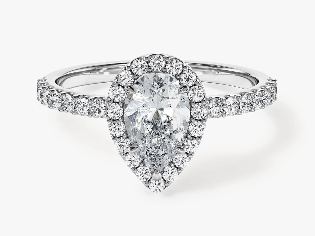 Pear Halo Lab Grown Diamond Engagement Ring with Pave Set Side Stones (1.00 CT)