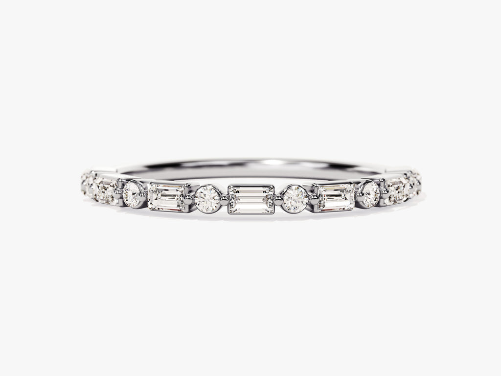 Abwechselnd runder und Baguetteschliff-Moissanit-Ehering