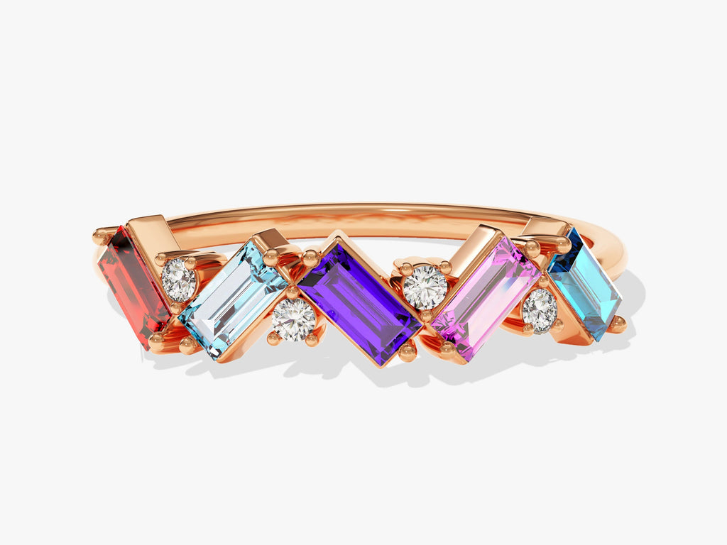Baguette-Familienring mit Geburtssteinen