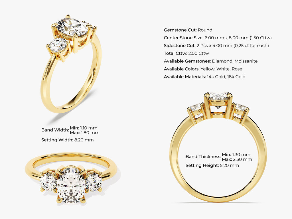 Drei Steine Labordiamant Verlobungsring im Ovalschliff (2.00 CT TW)