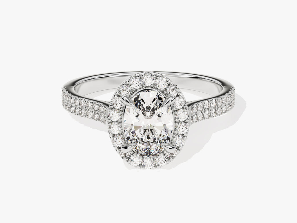 Labordiamant Verlobungsring im Ovalschliff Halo mit Doppel-Pave-Seitensteinen (1.00 CT)
