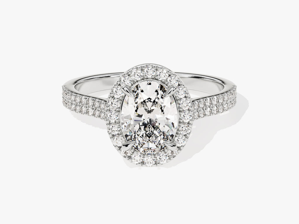 Labordiamant Verlobungsring im Ovalschliff Halo mit Doppel-Pave-Seitensteinen (1.50 CT)