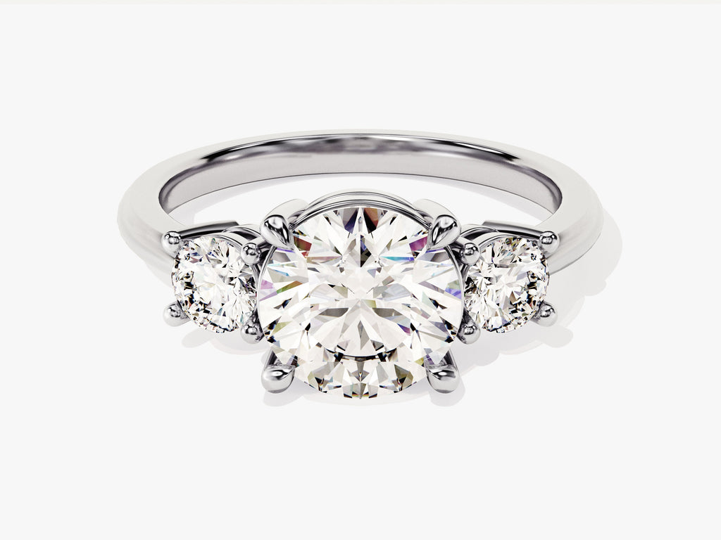 Drei Steine Moissanit Verlobungsring im Rundschliff (2.50 CT TW)