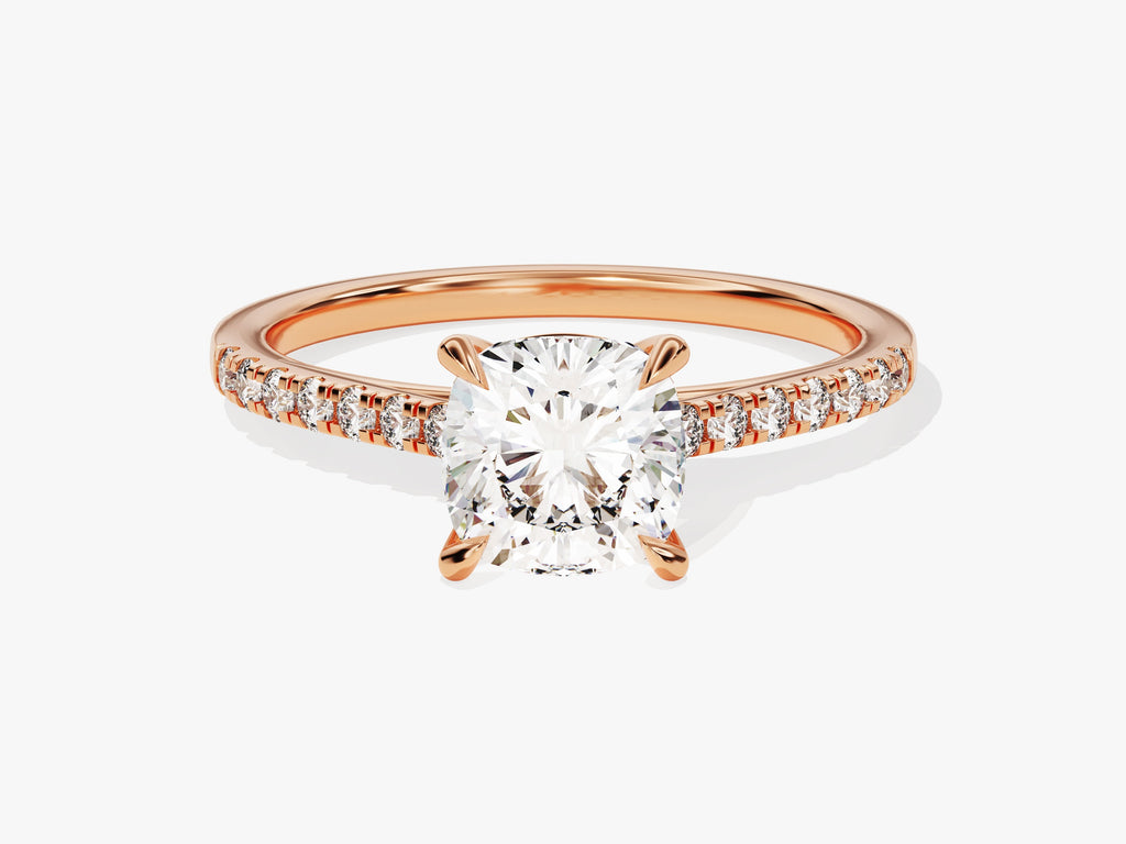 Labordiamant Verlobungsring im Kissenschliff mit Pave-Seitensteinen (1.50 CT)