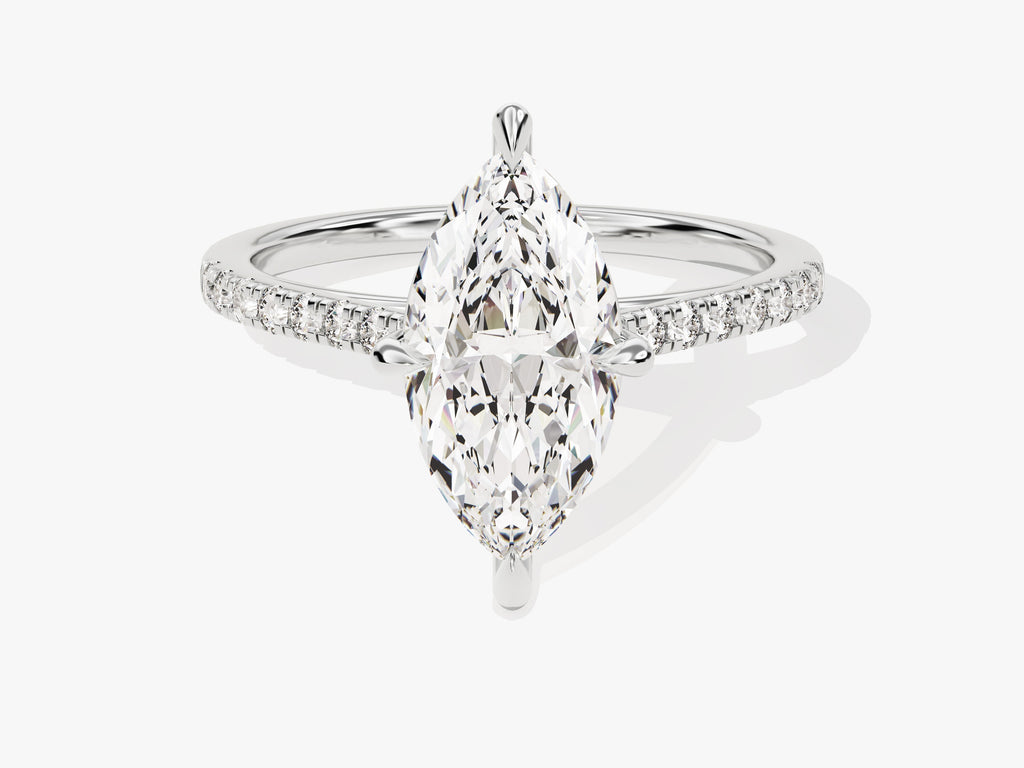 Labordiamant Verlobungsring im Marquiseschliff mit Pave-Seitensteinen (2.00 CT)