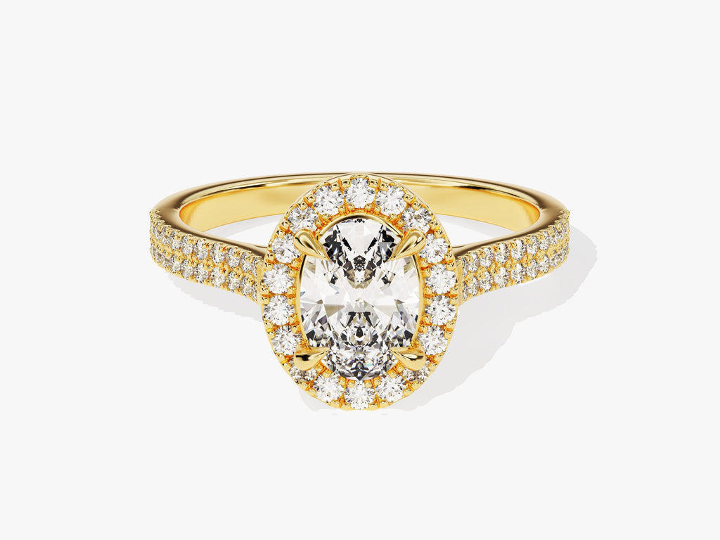 Labordiamant Verlobungsring im Ovalschliff Halo mit Doppel-Pave-Seitensteinen (1.00 CT)