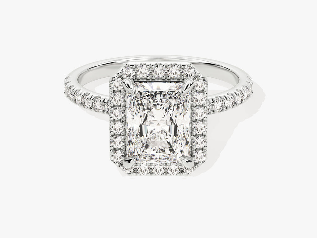 Labordiamant Verlobungsring im Radiantschliff Halo mit Pave-Seitensteinen (2.00 CT)
