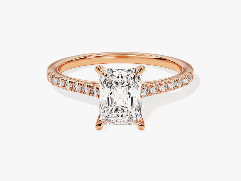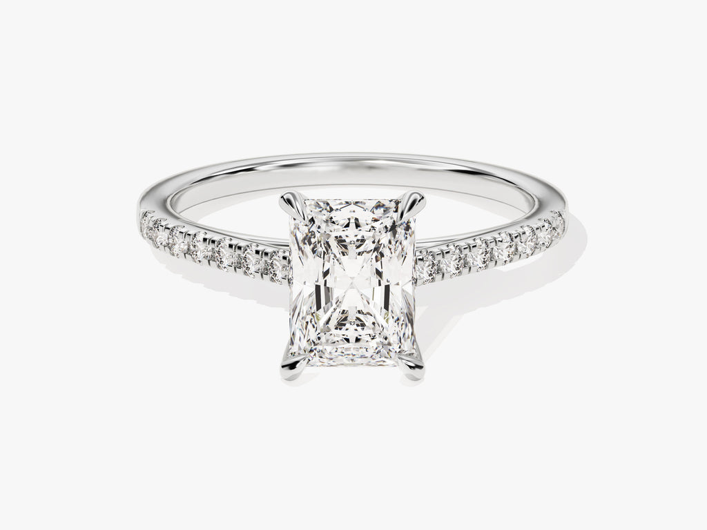 Labordiamant Verlobungsring im Radiantschliff mit Pave-Seitensteinen (1.50 CT)