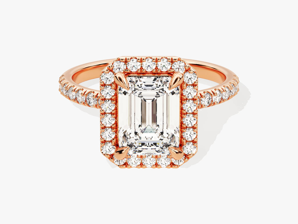 Labordiamant Verlobungsring im Smaragdschliff Halo mit Seitensteinen (2.00 CT)