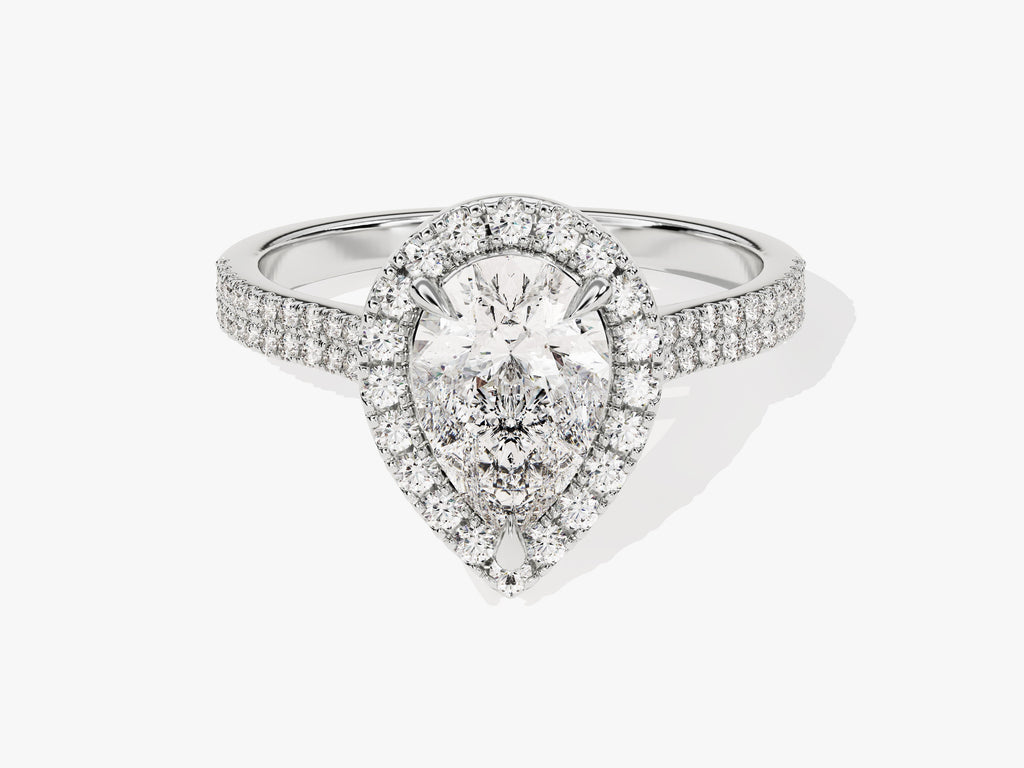 Labordiamant Verlobungsring im Tropfenschliff Halo mit Doppel-Pave-Seitensteinen (1.50 CT)