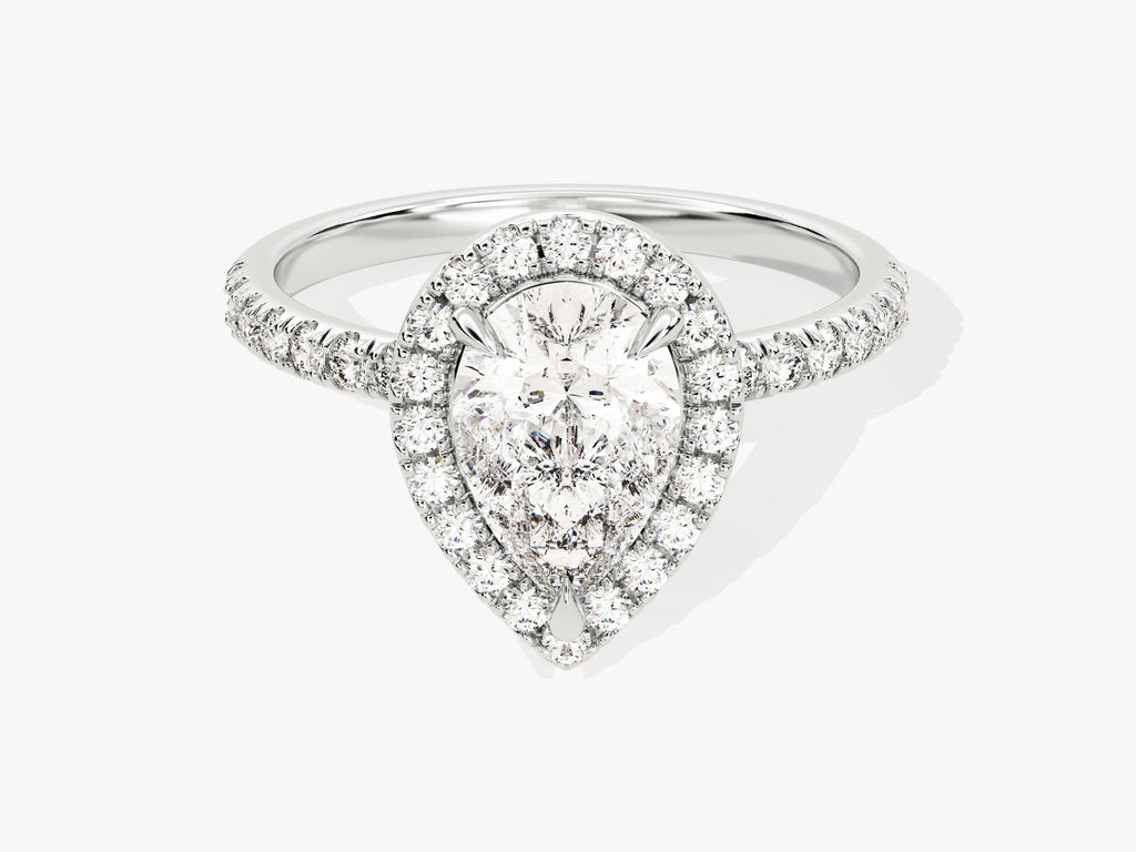 Labordiamant Verlobungsring im Tropfenschliff Halo mit Pave-Seitensteinen (1.50 CT)