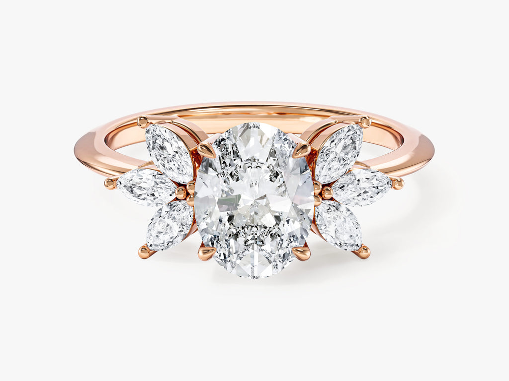 Labordiamant Verlobungsring im Ovalschliff mit Marquise-Cluster-Akzent (1.50 CT)