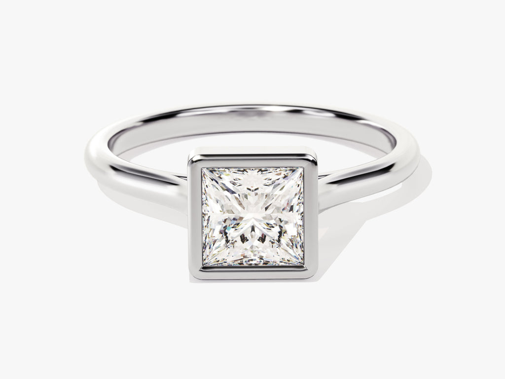 Moissanit Verlobungsring im Bezel-Prinzessschliff (1.00 CT)