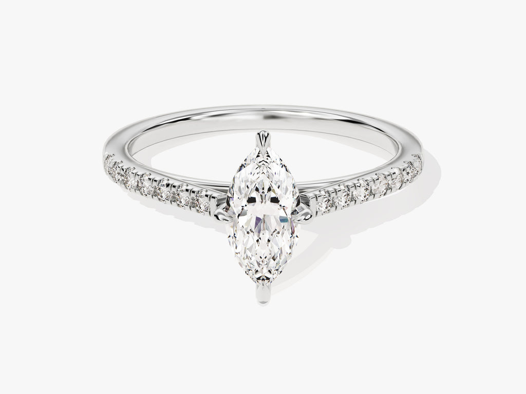 Moissanit Verlobungsring im Marquiseschliff mit Pave-Seitensteinen (1.00 CT)