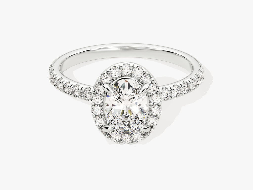 Moissanit Verlobungsring im Ovalschliff Halo mit Pave-Seitensteinen (1.00 CT)