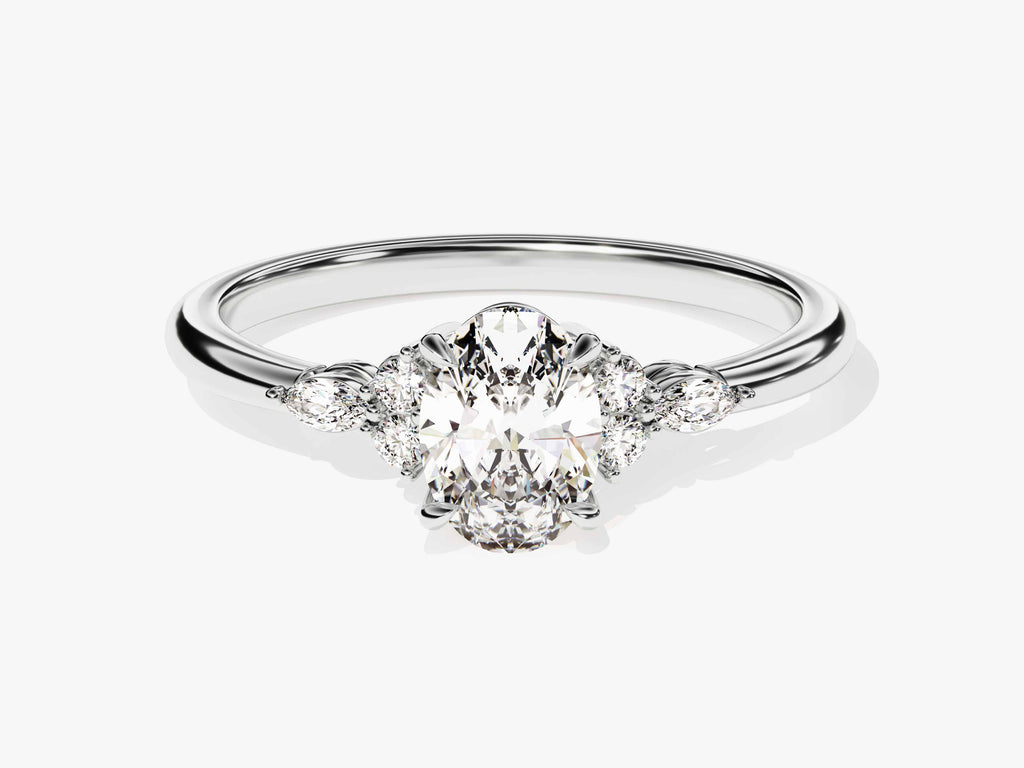 Moissanit Verlobungsring im Ovalschliff mit Cluster-Akzent (1.00 CT)