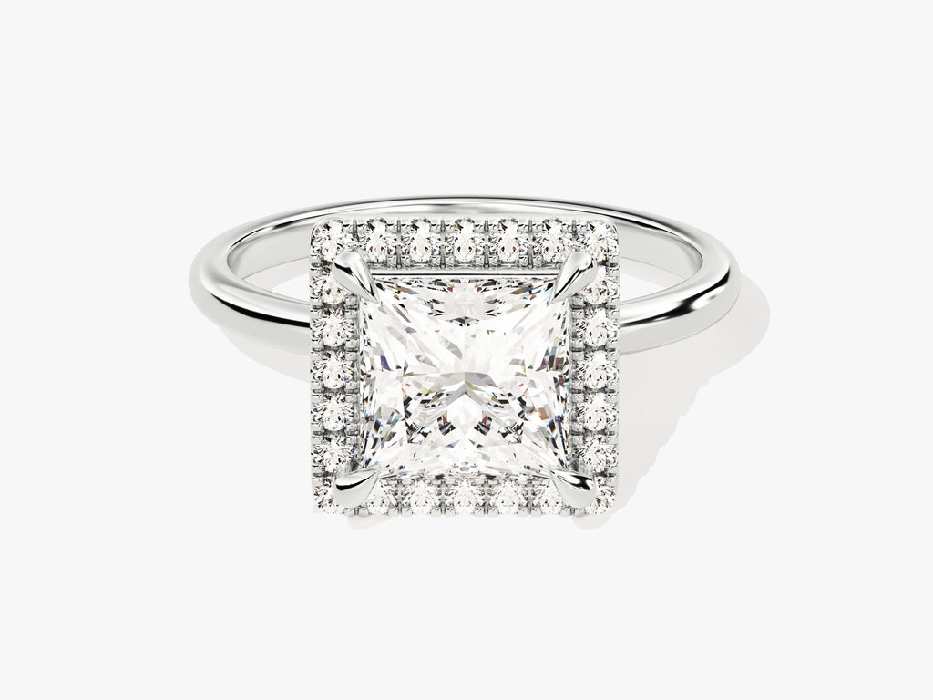 Moissanit Verlobungsring im Prinzessschliff Halo (2.00 CT)