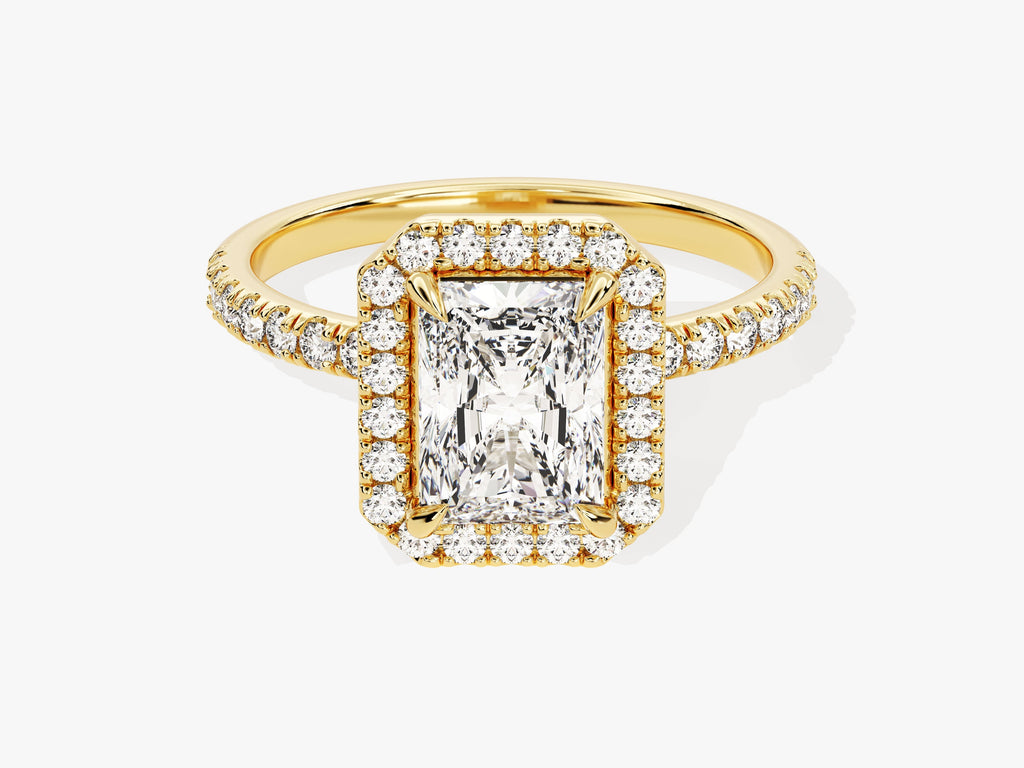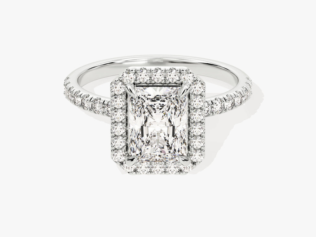 Moissanit Verlobungsring im Radiantschliff Halo mit Pave-Seitensteinen (1.50 CT)