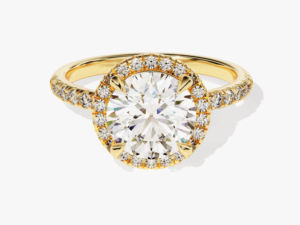 Moissanit Verlobungsring im runden Halo mit Pave-Seitensteinen (2.00 CT)