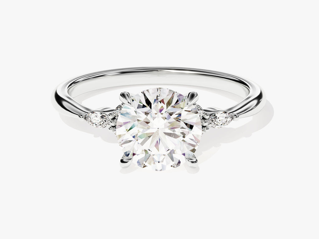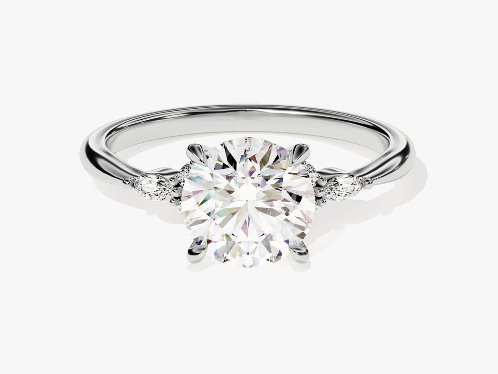 Moissanit Verlobungsring im Rundschliff mit Cluster-Akzent (1.50 CT)