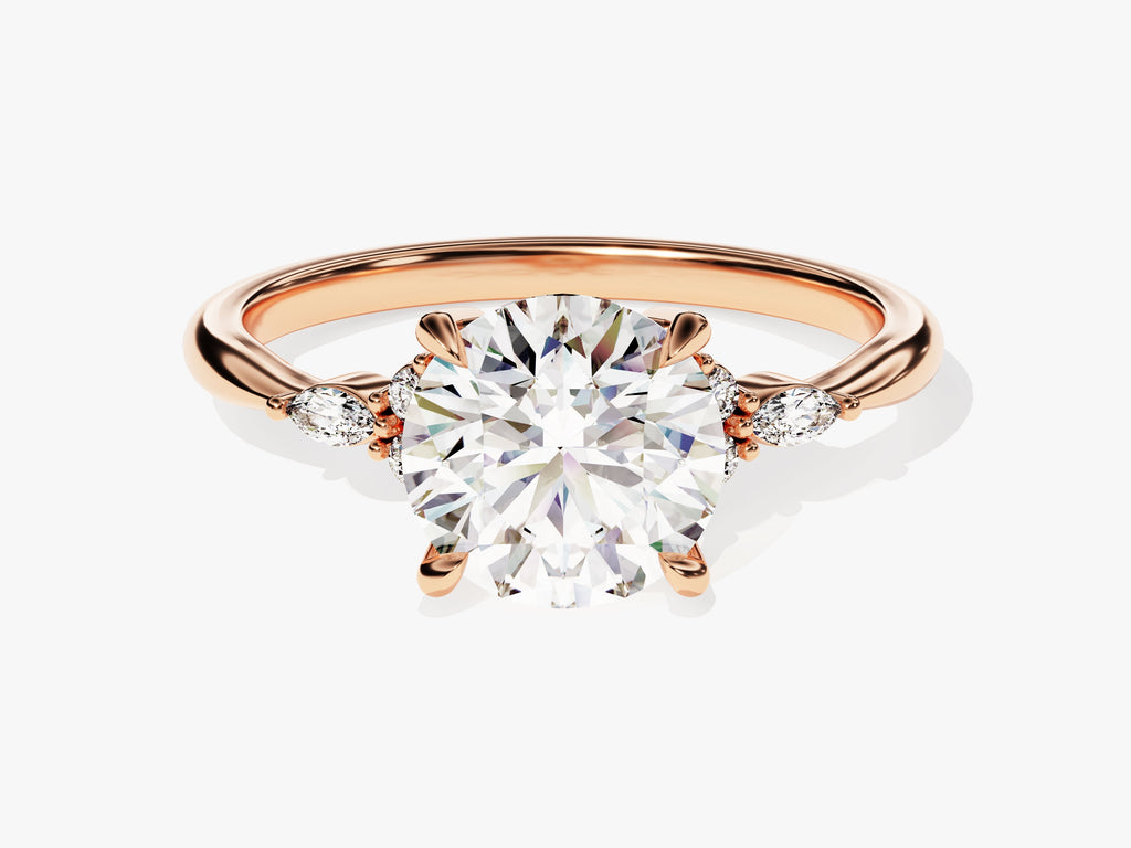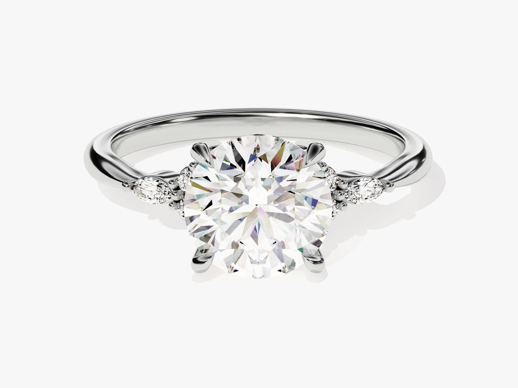 Moissanit Verlobungsring im Rundschliff mit Cluster-Akzent (2.00 CT)