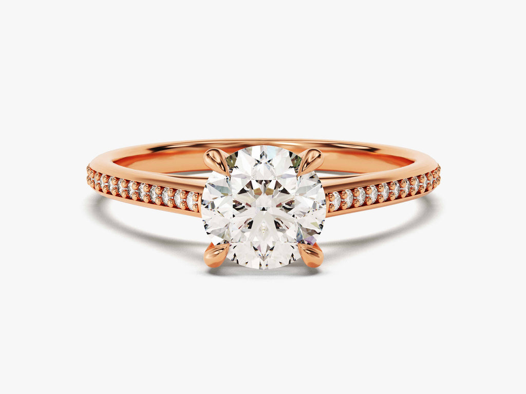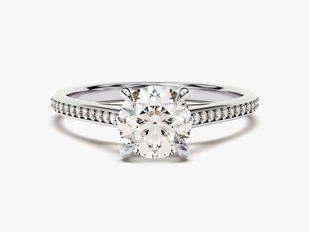 Moissanit Verlobungsring im Rundschliff mit Kanal-Pave-Seitensteinen (1.00 CT)