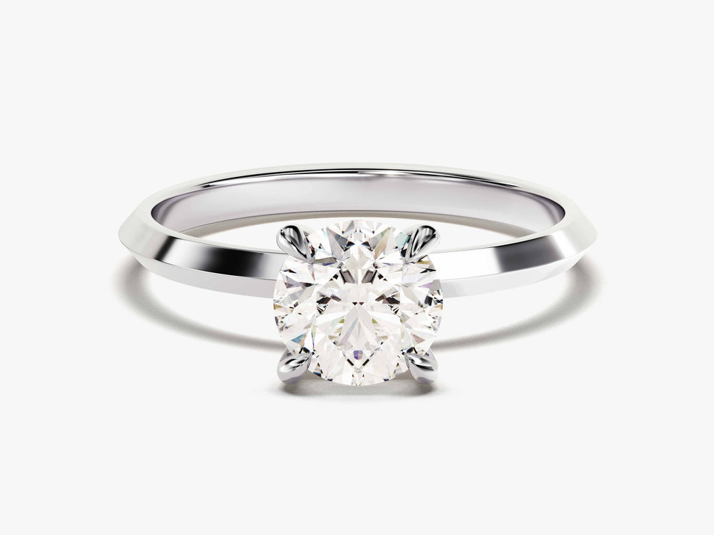 Moissanit Verlobungsring im Rundschliff mit Messer-Kante und 4-Krappen-Fassung (1.00 CT)