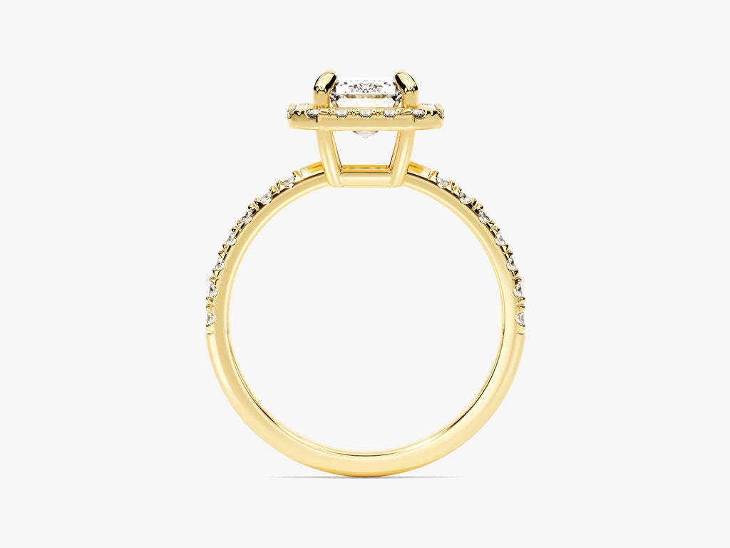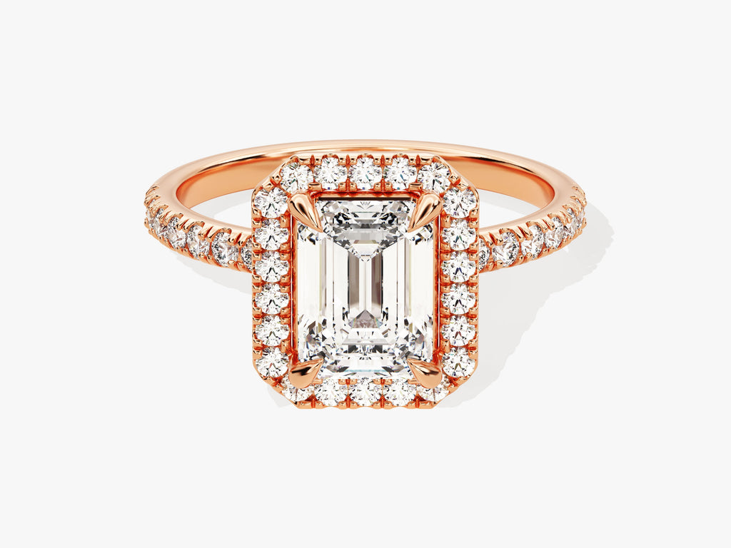 Moissanit Verlobungsring im Smaragdschliff Halo mit Pave-Seitensteinen (1.50 CT)