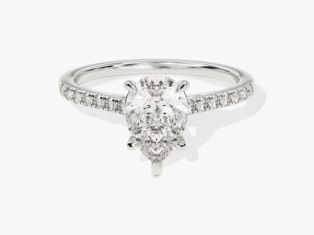 Moissanit Verlobungsring im Tropfenschliff mit Pave-Seitensteinen (1.50 CT)