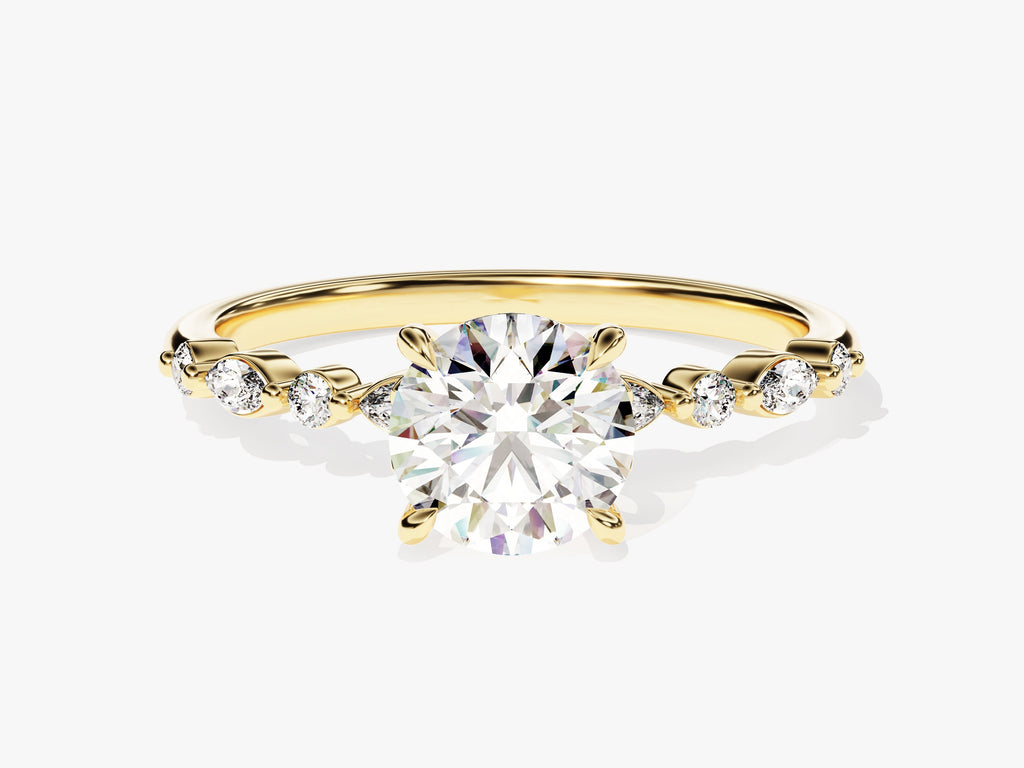 Moissanit Verlobungsring mit Marquise-Seitensteinen (1.00 CT)