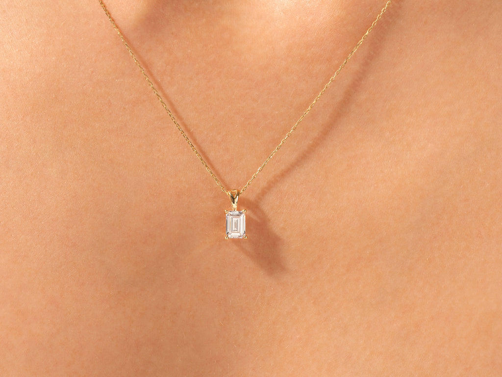 Solitär Moissanit-Anhänger im Smaragdschliff (1.00 CT)