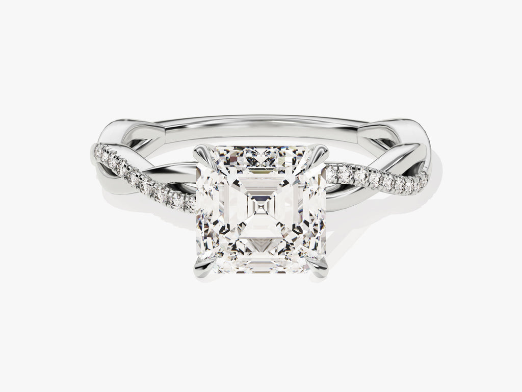 Twist Moissanit Verlobungsring im Asscherschliff mit Seitensteinen (2.00 CT)