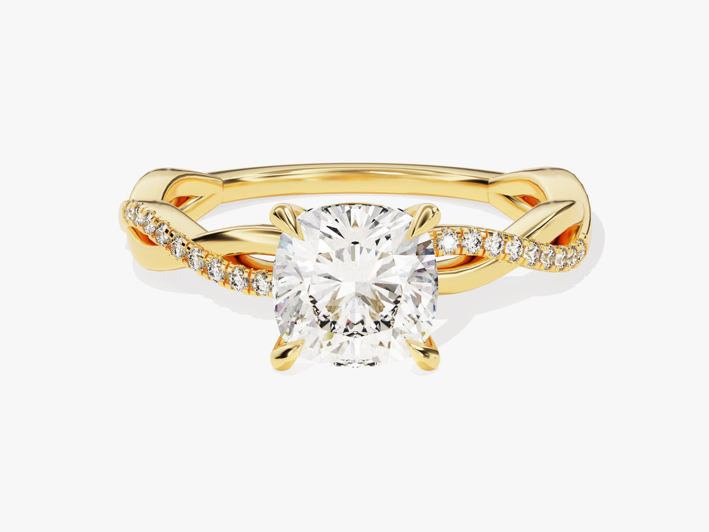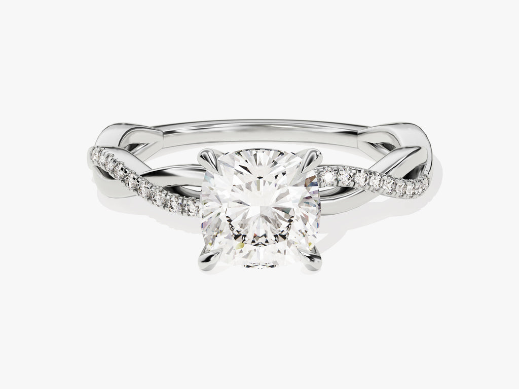 Twist Moissanit Verlobungsring im Kissenschliff mit Seitensteinen (1.50 CT)