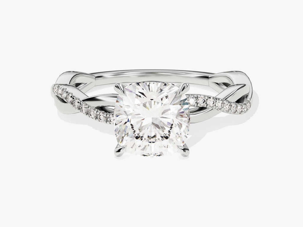 Twist Moissanit Verlobungsring im Kissenschliff mit Seitensteinen (2.00 CT)