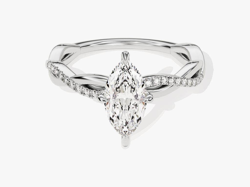 Twist Moissanit Verlobungsring im Marquiseschliff mit Seitensteinen (1.00 CT)