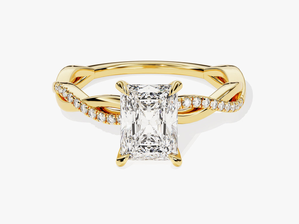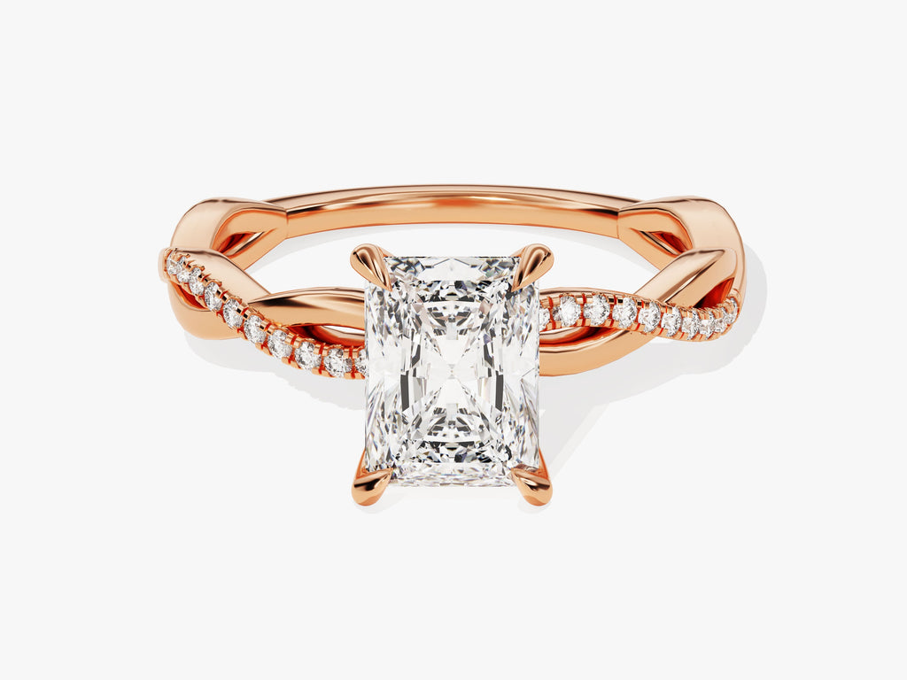 Twist Moissanit Verlobungsring im Radiantschliff mit Seitensteinen (1.50 CT)