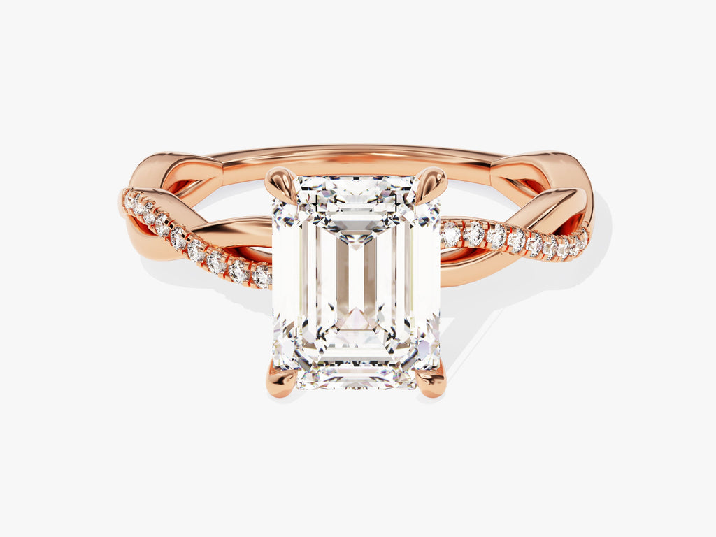 Twist Moissanit Verlobungsring im Smaragdschliff mit Seitensteinen (2.00 CT)